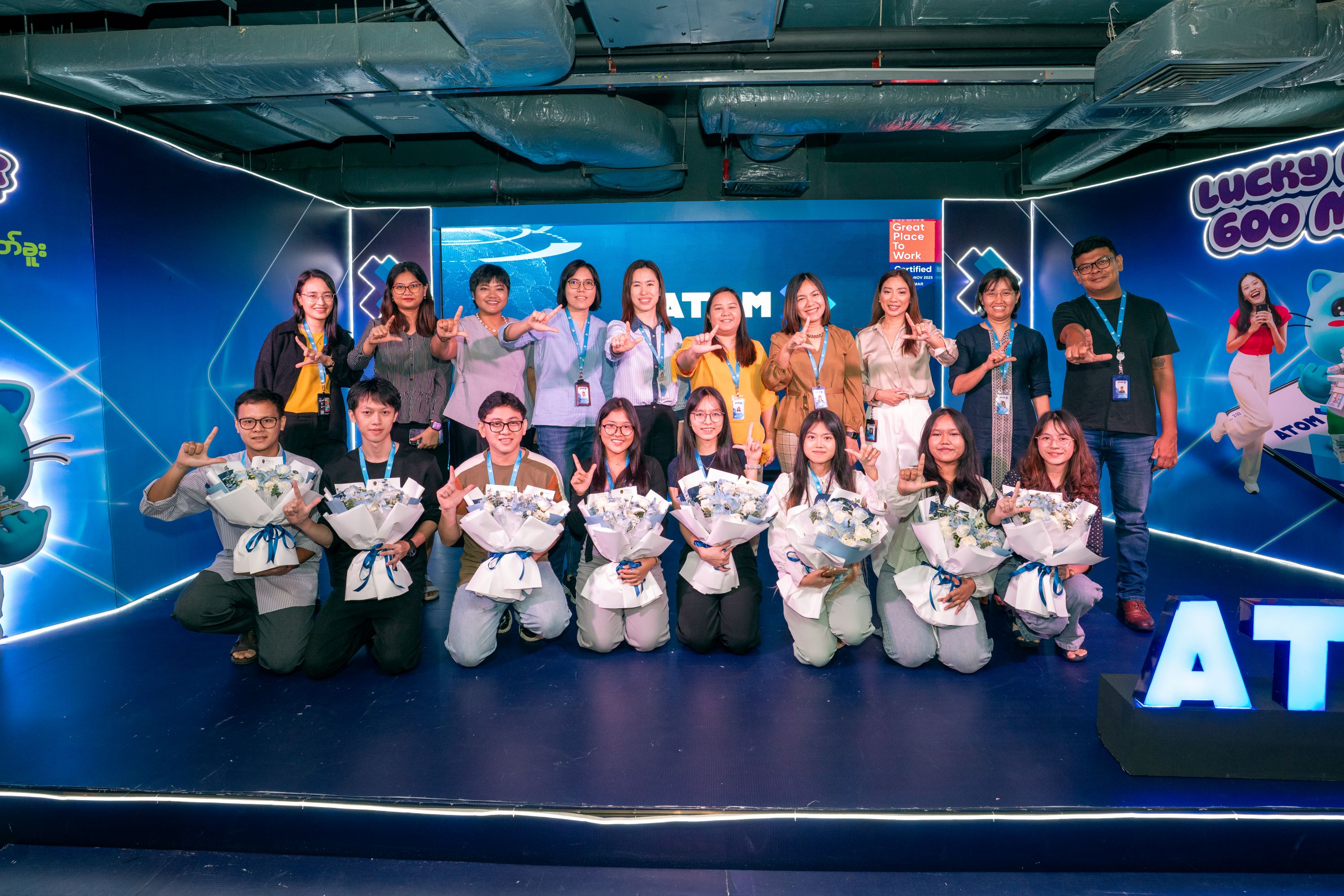 အက်တမ်(ATOM) ၏ လူ့စွမ်းအားအရင်းအမြစ်ဆိုင်ရာ အရာရှိချုပ် ကိုဇာနည်ထွန်း မှလည်း “အက်တမ် (ATOM) ဟာ အရည်အချင်းရှိသူများအတွက် အခွင့်အလမ်းတွေ ဖန်တီးပေးနေတဲ့ လုပ်ငန်းခွင်တစ်ခု ဖြစ်ပါတယ်။ ဒါ့အပြင် အရည်အချင်းပြည့်ဝတဲ့ လူငယ်တွေကို ပိုမိုတိုးတက်အောင်မြင်ပြီး အပြုသဘော ဆောင်တဲ့ ပြောင်းလဲမှုတွေ ရရှိစေဖို့ လူမှုအသိုင်းအဝိုင်းကိုဦးစားပေးတဲ့ ယဉ်ကျေးမှုကို ဗဟိုပြုပြီး မှန်ကန် ကောင်းမွန်တဲ့ ပလက်ဖောင်းတွေကတစ်ဆင့် ပံ့ပိုးပေးလျက်ရှိပါတယ်။ ကျွန်တော်တို့ရဲ့ Great Place to Work® တန်ဖိုးတွေကို ထင်ဟပ်စေတဲ့ အားလုံးအတူတကွပါဝင်တဲ့ ပတ်ဝန်းကျင်တစ်ခုကို ထိန်းသိမ်းထားရင်း မြန်မာနိုင်ငံရှိ လူငယ်များကို အခုလို တက်တက်ကြွကြွ ကူညီပေးနိုင်တဲ့ အတွက်လည်း ဂုဏ်ယူမိပါတယ်” ဟု ပြောကြားခဲ့ပါသည်။
