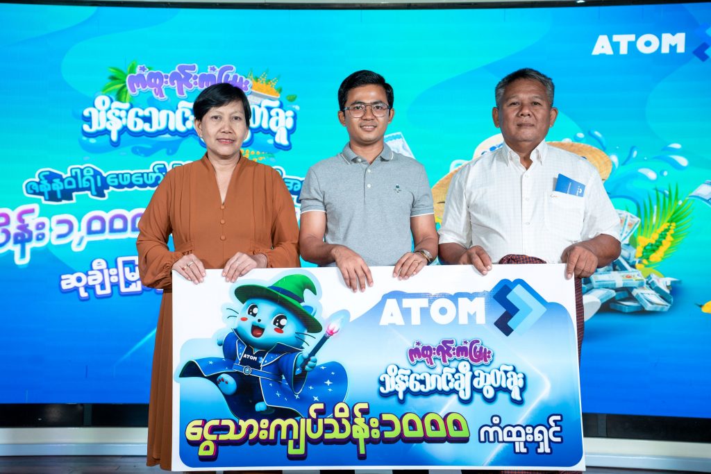 အက်တမ်(ATOM) ၏ ‘ကံထူးရင်းကံမြူး’ ပရိုမိုးရှင်းကြီးမှ ပထမဦးဆုံး ကျပ်သိန်း (၁,၀၀၀) ကံထူးရှင် (၃) ဦးအား ဆုချီးမြှင့်