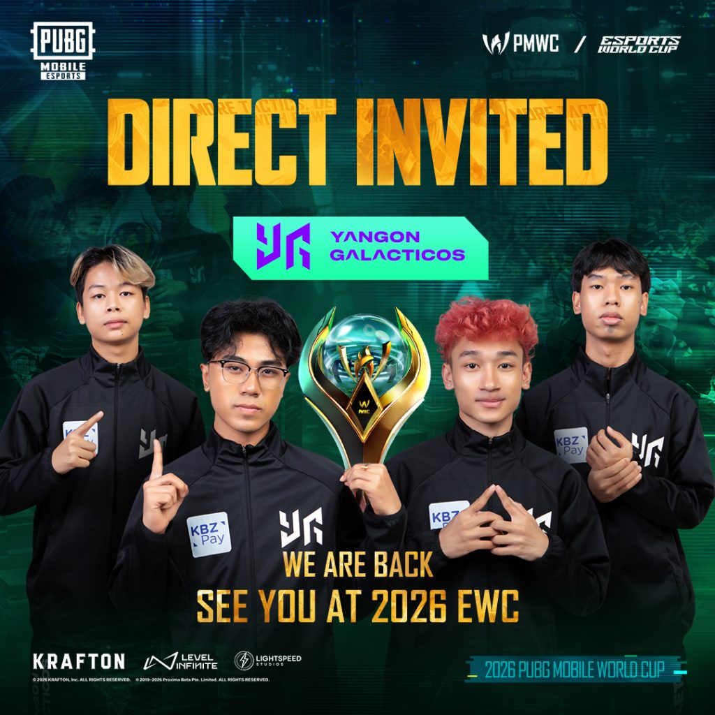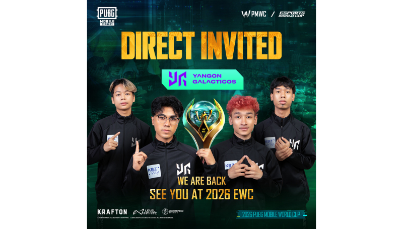 ကမ္ဘာကျော် နာမည်ကြီး မိုဘိုင်းဂိမ်းတစ်ခုဖြစ်သည့် PUBG MOBILE သည် လာမည့် eSports World Cup (2026 EWC) ၏ တစ်စိတ်တစ်ပိုင်းအဖြစ် ကျင်းပပြုလုပ်သော 2026 PUBG MOBILE World Cup တွင် မြန်မာနိုင်ငံမှ Yangon Galacticos (YG) အသင်းက တိုက်ရိုက်ဝင်ရောက်ယှဉ်ပြိုင်ခွင့် ရရှိသွားမည်ဖြစ်ကြောင်း တရားဝင်ထုတ်ပြန်ကြေညာလိုက်သည်။ အဆိုပါ တိုက်ရိုက်ဝင်ခွင့်ဖိတ်ကြားမှုသည် Yangon Galacticos (YG) အသင်းအတွက် ကမ္ဘာ့ချန်ပီယံဘွဲ့ကို ဆက်လက်ကာကွယ်နိုင်မည့် အခွင့်အရေးတစ်ရပ်ဖြစ်သလို မြန်မာနိုင်ငံ၏ Esports ကဏ္ဍသည် ကမ္ဘာ့အဆင့်တွင် ပိုမိုတိုးတက်လာကြောင်း PUBG MOBILE က အသိအမှတ်ပြုလိုက်ခြင်းလည်းဖြစ်သည်။