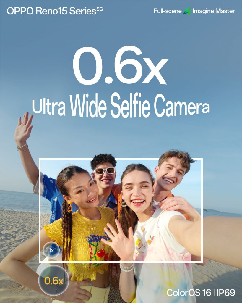 0.6x Ultra Wide Angle ပါရှိတဲ့ 50MP Selfie Camera နဲ့အတူ ခေတ်မီတဲ့ လူငယ်ဆန်ဆန် Group Selfie အတွေ့အကြုံကို ပိုပြီးခံစားရရှိနိုင်မဲ့ OPPO Reno15 Series 5G
