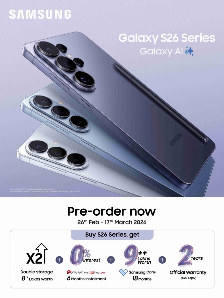 - Galaxy Unpacked မိတ်ဆက်ပွဲကြီးအတွက် ကြိုတင် Register ပြုလုပ်ခဲ့ပြီးမှ Pre-order မှာယူသူများအနေနဲ့လည်း Galaxy S26 Series ဖုန်း (၃) လုံးကို ထပ်မံကံစမ်း ရယူခွင့် ရနိင်ဦးမှာ ဖြစ်ပါတယ်။