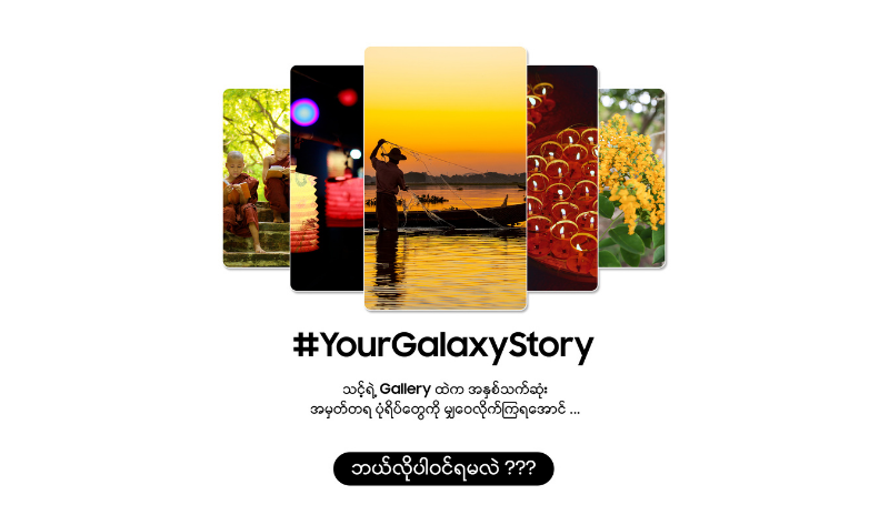 မိမိ အသုံးပြုနေတဲ့ Samsung Galaxy ဖုန်း ရဲ့ Gallery ထဲက Selfie၊ ချစ်ရသူတွေနဲ့အတူရှိတဲ့ အခိုက်အတန့်၊ မိမိ ဝါသနာ၊ မြန်မာအငွေ့အသက်ပါတဲ့ Story / Photo / Video စသည်တို့မှ တစ်ခုကို ရွေးပါ။
