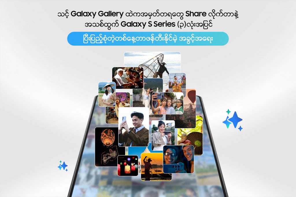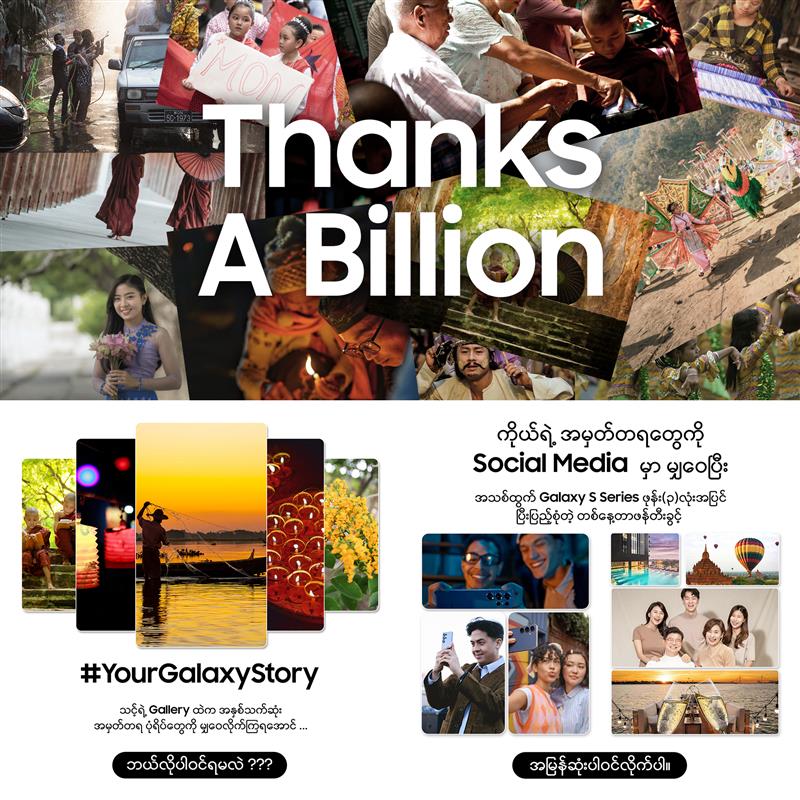 Samsung Myanmar မှ Samsung နှင့် အတူ အမှတ်တရအချိန်များ ဖန်တီးခဲ့ကြတဲ့ Samsung ချစ်သူများကို ကျေးဇူးတုံ့ပြန်တဲ့ အနေနဲ့ နောက်ဆုံးပေါ် Galaxy S26 Series ဖုန်းအသစ် (၃) လုံးအပါအဝင် ဆုလက်ဆောင်များ ပေးအပ်သွားမယ့် Share Your Galaxy Story အစီအစဉ်ကို ပြုလုပ်ပေးလျက် ရှိနေတာ ဖြစ်ပါတယ်။